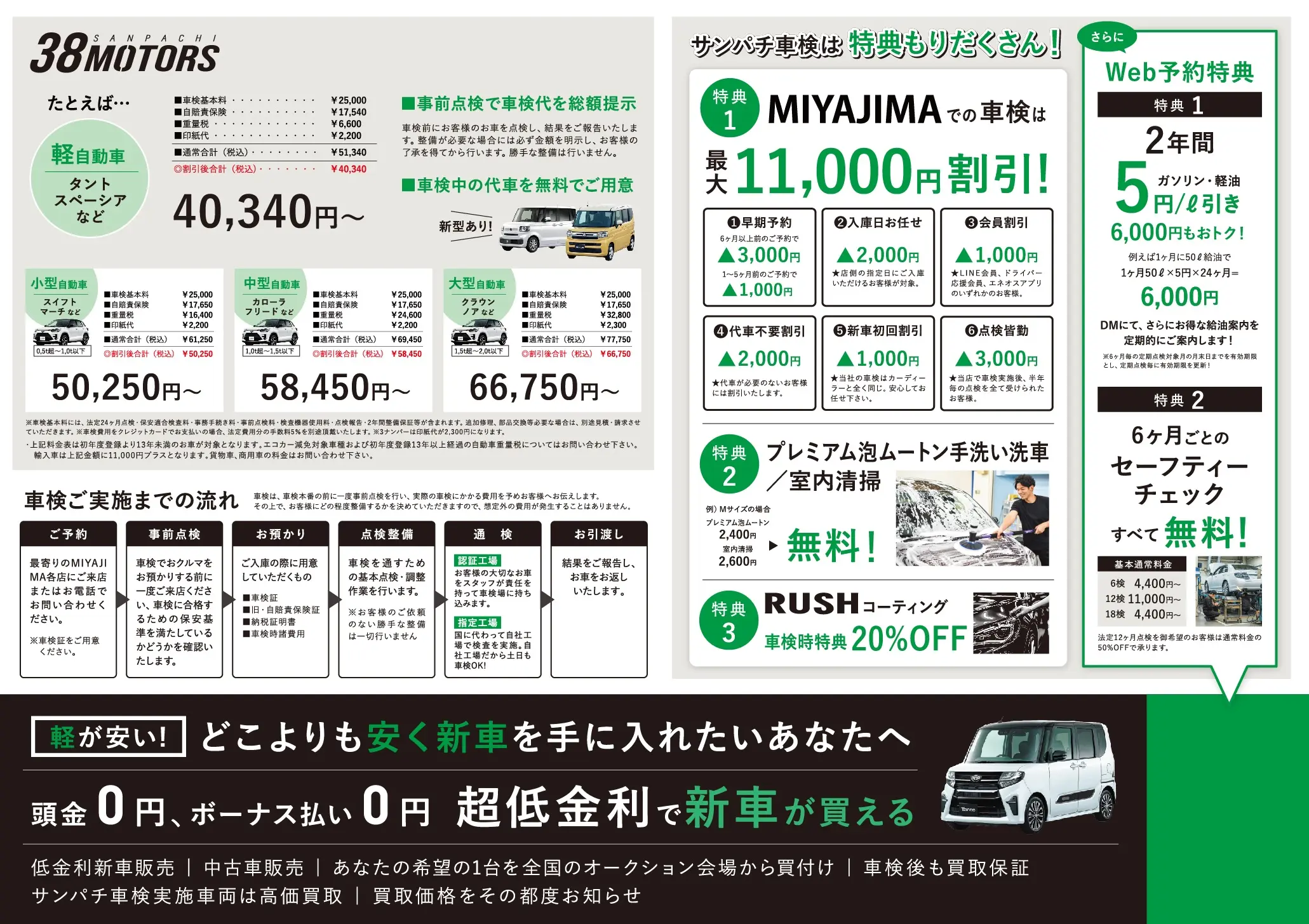 サンパチ車検は車検でお車をお預かりする前に事前点検を実施し、法定費用・車検基本料・整備代を含めた車検総額を見積り提示いたします!